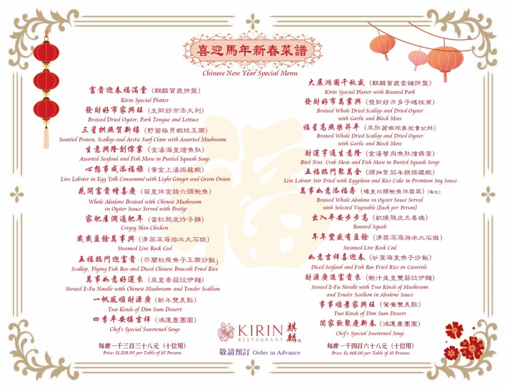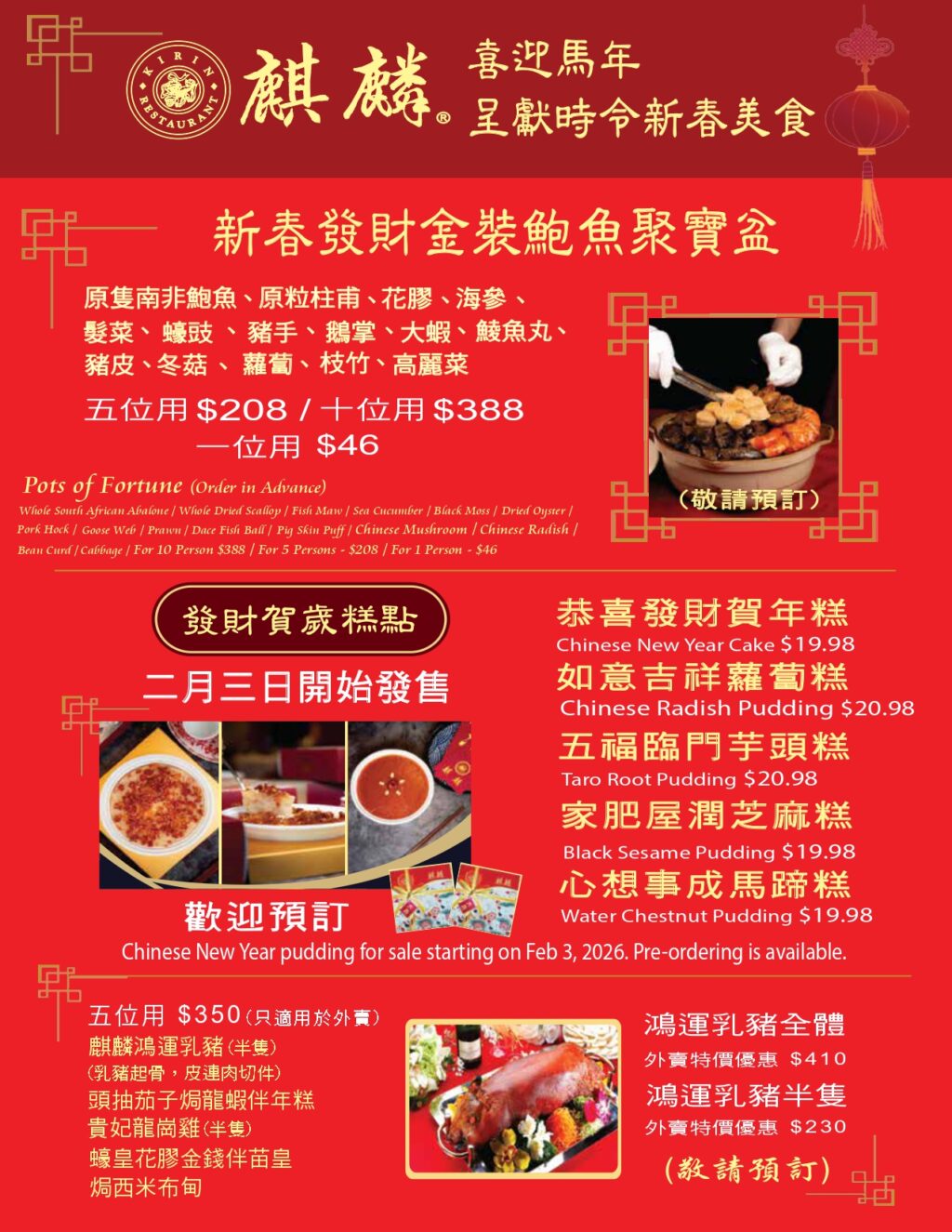 - 迎馬年,麒麟酒家隆重推出春節特色菜單!